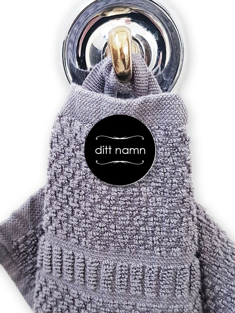 Att alla i familjen använder en personlig handduk som inte delas med andra är en viktig faktor för att hålla sig frisk. Ett sätt att hålla redan på handdukarna är att märka upp dem. Vi har namnskyltar som du kan hänga upp eller klistra fast vid handdukskroken. Vi har även en modell av namnskyltar som du monterar fast direkt på handduken. Mer info om våra namnskyltar hittar du här.