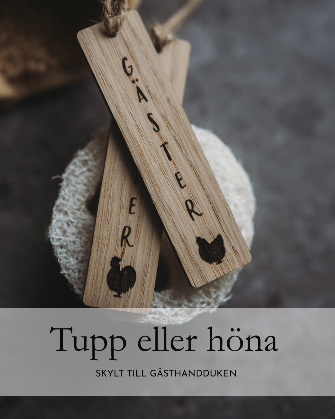 Till gästhandduken kan en liten skylt med ordet gäster hängas. Det gör det lätt att hålla isär handdukarna. Och samtidigt känns det lite mer omtänksamt för den som är på besök.