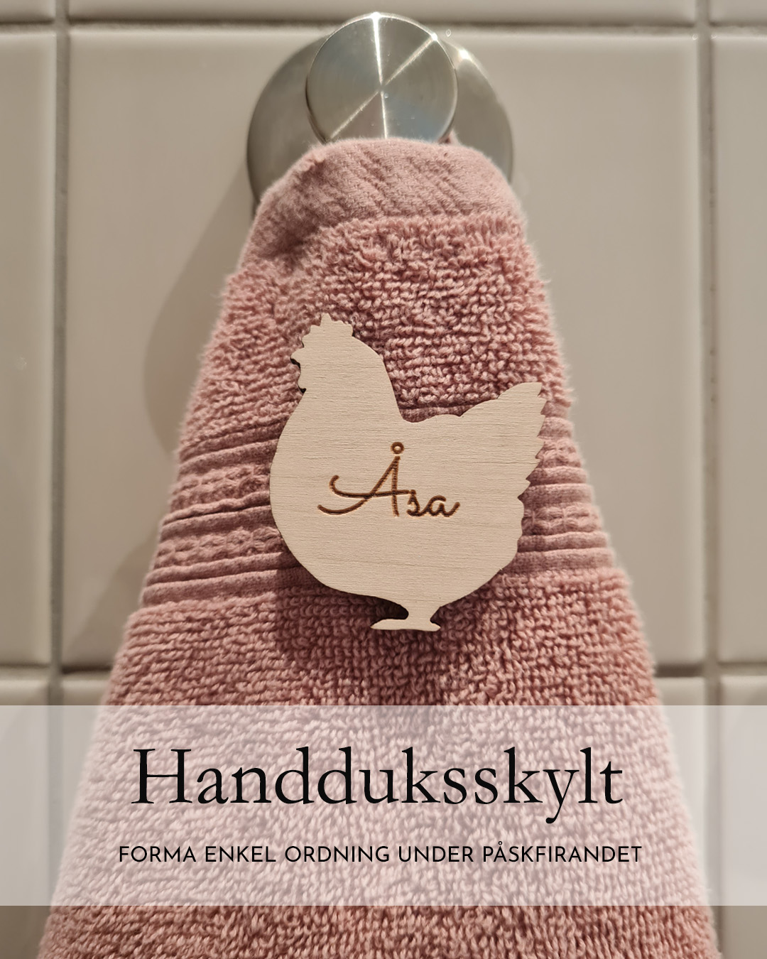 När många är hemma samtidigt märks det ofta i badrummet först. Handdukar blandas ihop. Någon undrar vilken som är deras. Och gäster vill gärna vara säkra på att de använder rätt. Ett enkelt sätt att skapa lite mer ordning är att märka familjens handdukar med små namnskyltar. I påsktid kan de få formen av en höna eller tupp. Skyltarna sätts fast med magnet direkt på handduken. De är lätta att fästa, sitter stadigt och kan enkelt tas bort när påsken är över.